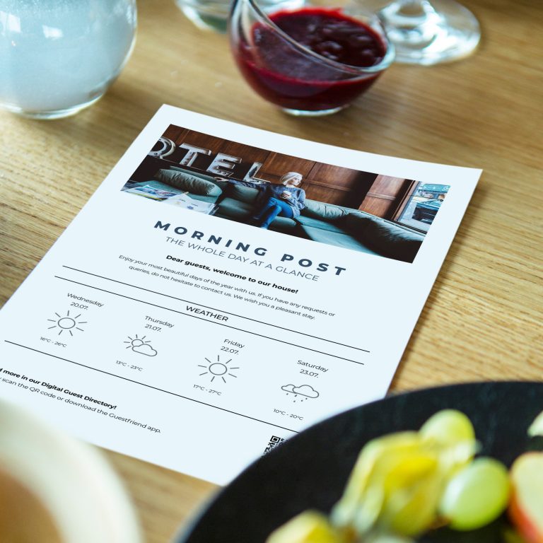 The content for your digital guest directory is individually created by our team and tailored to your accommodation. Whether you want to share the most important information about the stay or integrate all in-house services – the content and scope of your digital Guest Directory is as unique as your accommodation